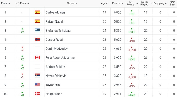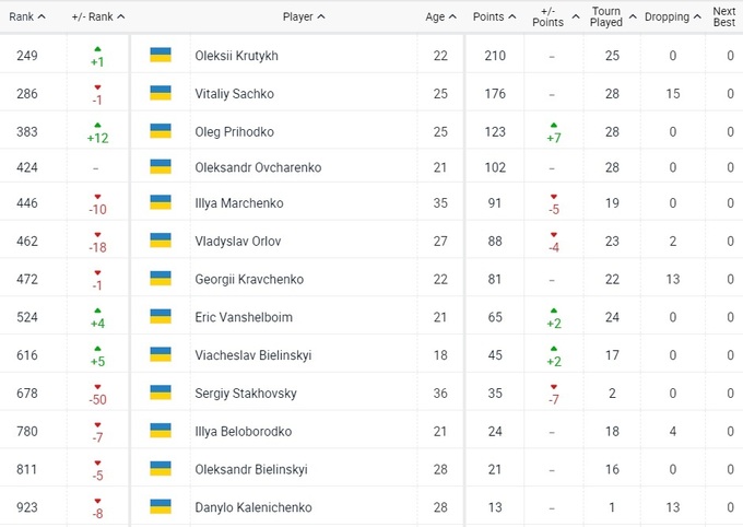 Щодо українців, то особливих досягнень немає. Олексій Крутих та Віталій Сачко тримаються у третій сотні, але вище піднятися поки що не виходить.