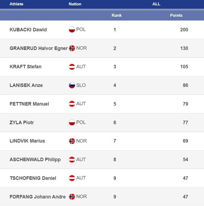 Про це свідчить і статистика. Кубацкі – 11-й стрибун в історії, який виграв два стартові особисті турніри в сезоні Кубка світу. Із попередніх 10 випадків у чотирьох стрибуни, які розпочинали сезон із двох перемог, у підсумку і завойовували Великий кришталевий глобус (ВКГ). І ніколи не фінішували поза топ-10.