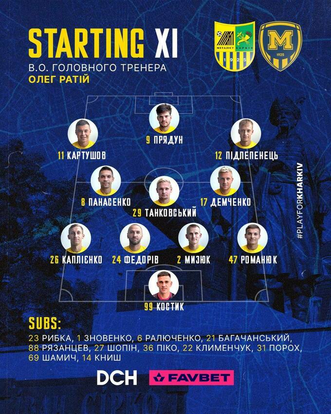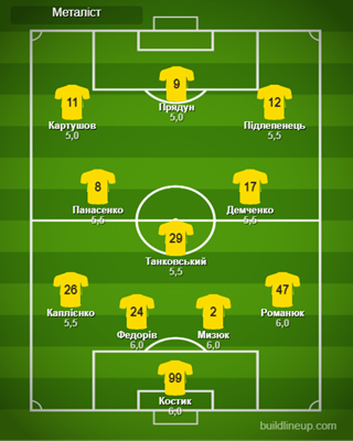 «Металіст»: Костик – Мизюк, Федорів, Романюк, Каплієнко (Книш, 65), Танковський, Демченко (Ралюченко, 65), Панасенко (Піко, 80), Підлепенець, Картушов, Прядун.