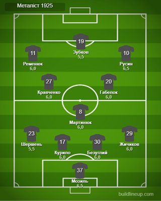 «Металіст 1925»: Мозіль – Жичиков (Ю.Потімков, 74), Безуглий, Курило, Шершень, Мартинюк, Русин, Габелок, Кравченко (Капінус, 55), Ременюк, Зубков (Бичек, 66).