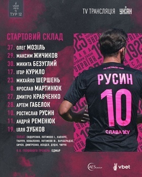 Запасні: Рибка, Зновенко, Багачанський, Рязанцев, Шопін, Клименчук, Порох, Шамич,