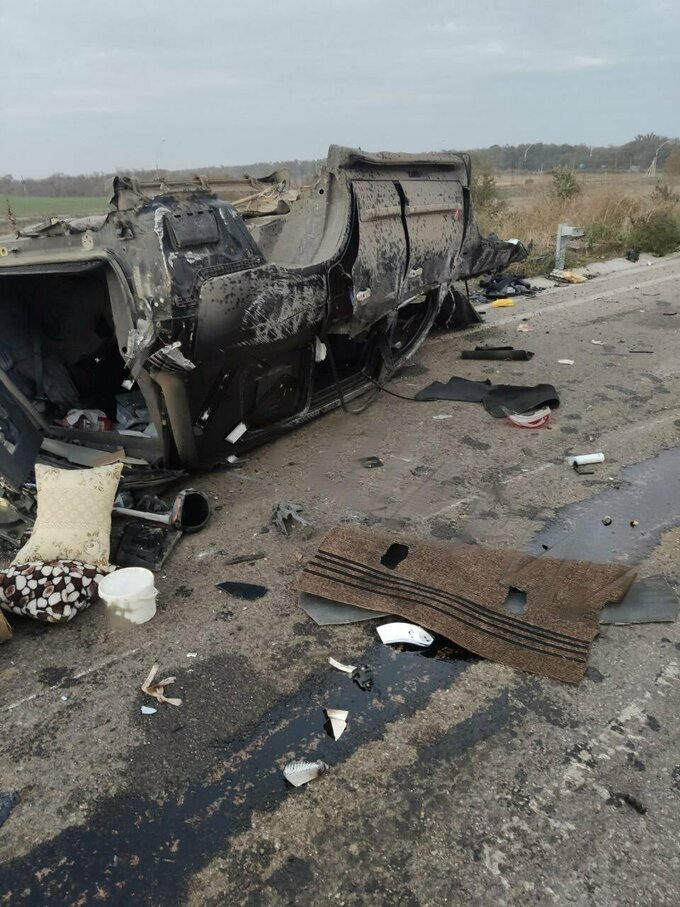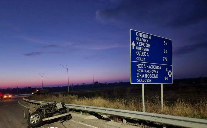 Російські пропагандони показали фотографії з імовірного місця смерті заступника глави російської окупаційної адміністрації Херсонської області Кирила Стремоусова, який сьогодні загинув внаслідок ДТП.