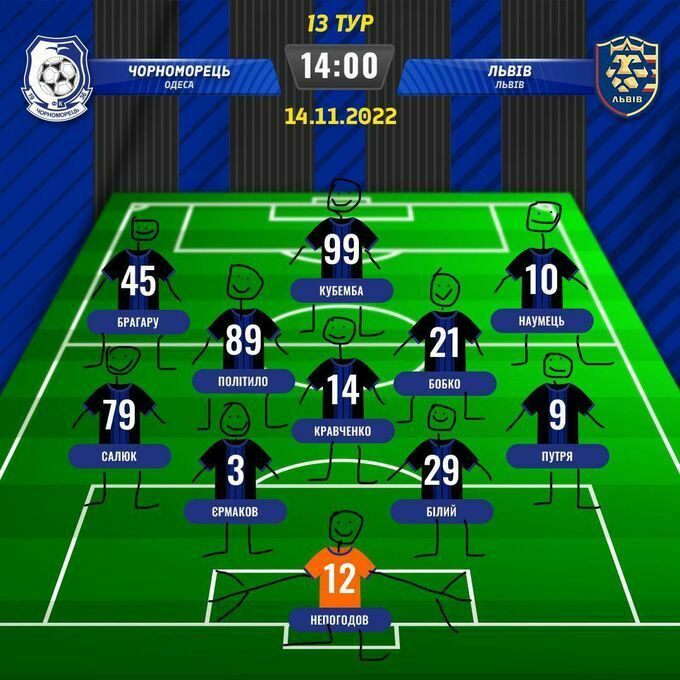У понеділок, 14 листопада, у рамках 13-го туру УПЛ зійдуться у очній зустрічі одеський «Чорноморець» та ФК «Львів». Поєдинок пройде на стадіоні «Чорноморець». Початок гри заплановано на 14.00.