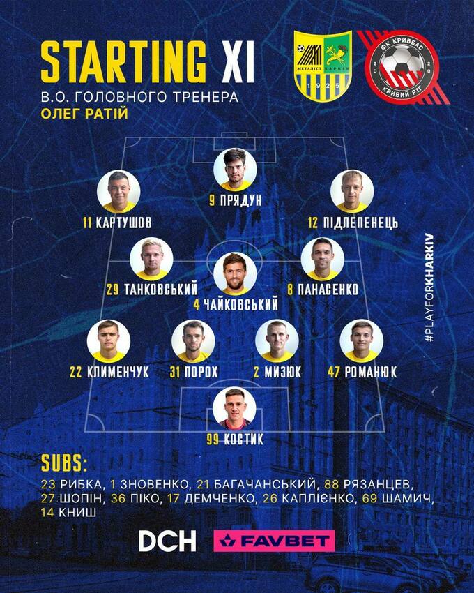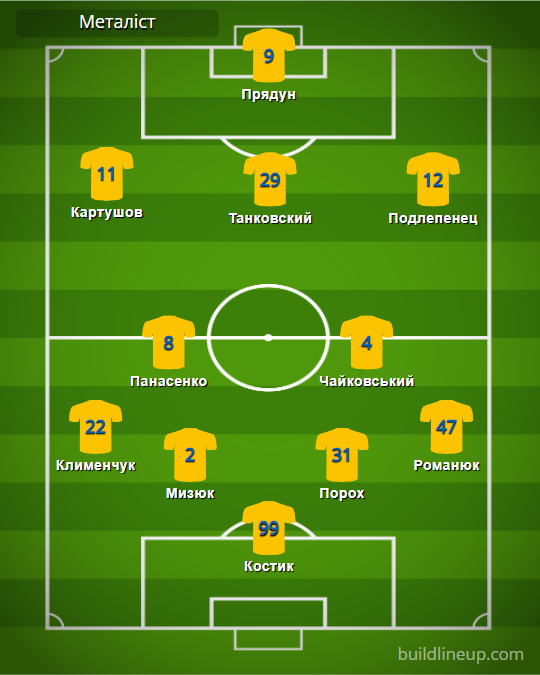 «Металіст»: Костик – Клименчук (Каплієнко, 71), Мизюк, Порох, Романюк – Панасенко (Книш, 62), Чайковський (Демченко, 50) – Картушов, Танковський, Підлепенець – Прядун.