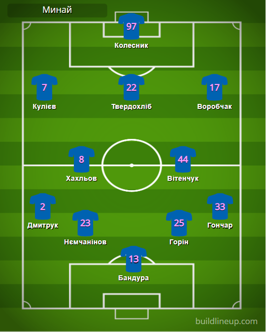 «Минай»: Бандура – Дмитрук, Нємчанінов, Горін, Гончар (Трубочкін, 41) – Хахльов, Вітенчук – Кулієв, Твердохліб (Байдал, 57), Воробчак (Чуєв, 74) – Колесник (Рогозинський, 73).