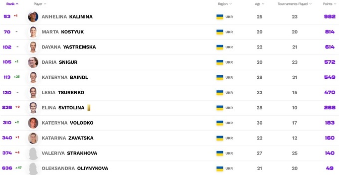 Шериф у фіналі обіграла українку Катерину Байндл. Але навіть цього виступу українці вистачило, аби піднятися на 25 позицій. До речі, титулу вистачило б для повернення до першої сотні. В інших українок зміни невеликі, хіба що можна відзначити +47 позицій у Олександри Олійникової та падіння Дарії Лопатецької. У першій сотні у нас лише дві тенісистки, але ще четверо – на підступах. Дар'я Снігур вкотре оновила особистий рекорд.