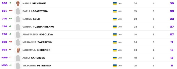 Людмила Кіченок зберігає дев'ятий рядок у парному рейтингу.