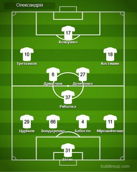 «Олександрія»: Білик, Бабогло, Мірошніченко, Цуріков, Рибалка, Бондаренко (Дячук, 85), Дришлюк (В.Волошин, 69), Третьяков (Копина, 80), Кожушко (Шулянський, 80), Костишин (Ковалець, 80), Демченко.