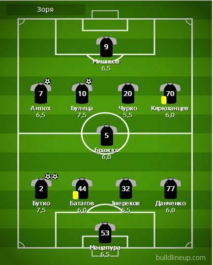 Заміни «Зорі»: Вантух – 6,0; Русин – 6,5; Нагнойний – б/о; Алефіренко – б/о.