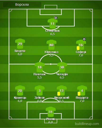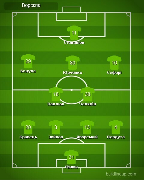 «Ворскла»: Різник, Зайков, Пердута, Степанюк, Яворський, Сефері, Павлюк, Кравець, Бацула, Челядін (Олійник, 81), Юрченко.