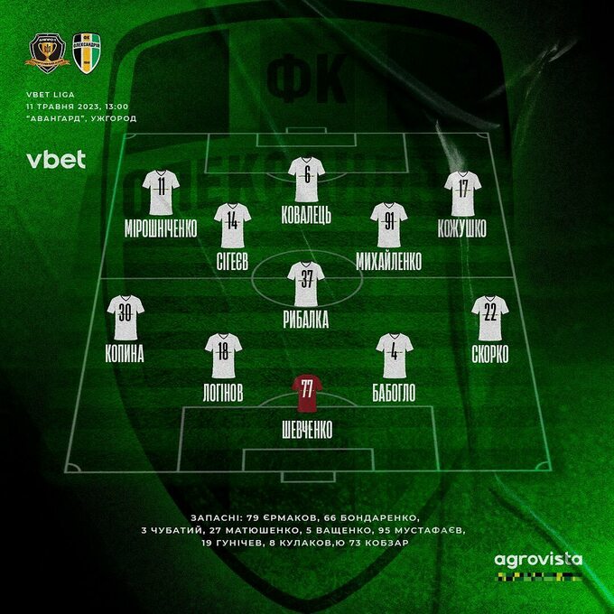 Запасні: Єрмаков, Чубатий, Ващенко, Гунічев, Кобзар.