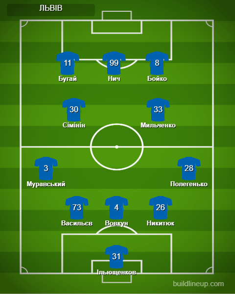 «Львів»: Ільющенков - Муравський, Васильєв, Никитюк, Вовкун (Шишка, 59), Мильченко, Полегенько, Сімінін, Нич (Крушинський, 46), Бугай, Бойко (Ременяк, 80, Михайлів Р., 85).