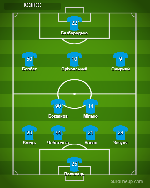 «Колос»: Волинець - Ємець, Чоботенко, Новак, Зозуля, Мілько, Богданов, Оріховський (М'якушко, 79), Болбат (Задоя, 79), Смирний (Ільїн, 54), Безбородько (Лисенко, 70).