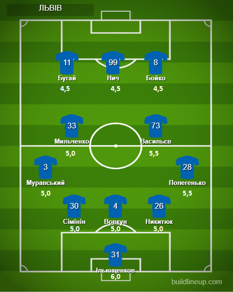 Заміни Львова: Крушинський - 5,5, Шишка - 5,5, Ременяк - 3,0, Михайлів Р. - б/о.