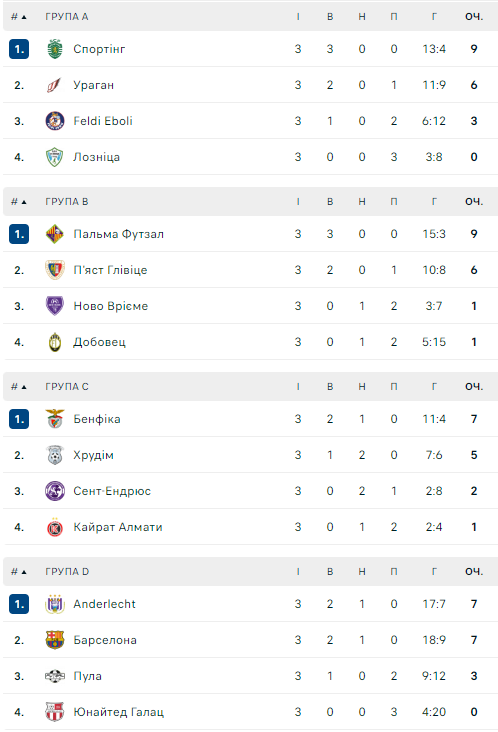 У півфінали пробилися португальські «Бенфіка», «Спортінг», бельгійський «Андерлехт» та іспанська «Пальма Футзал».