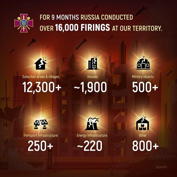 При цьому лише близько 500 цілей були військовими об'єктами, а усі інші — цивільні об'єкти. Армія оосії 12,3 тисячі разів вдарила по міській забудові та селах, 1900 разів влучила у багатоповерхові будинки.