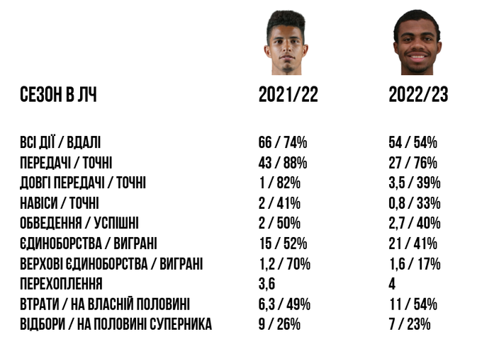 Саме нездатність допомагати команді грамотно виходити з оборони в атаку через пас стала головною проблемою Лукаса Тейлора у ЛЧ-2022/23, яка змусила замислитись про доцільність залучення «Шахтарем» цього легіонера до своїх лав. У порівнянні з показниками Додо в минулій єврокубковій кампанії, Тейлор у півтора рази програв за кількістю виконаних пасів, поступився у показнику їх точності, а «вишенькою на торті» став той факт, що менш високий Додо виявився навіть ефективнішим за Лукаса у такому компоненті, як гра в повітрі – перший вигравав 69% верхових дуелей в ЛЧ-2021/22, а другий виявився здатним завершити на свою користь лише 17%...