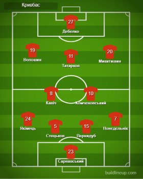 Кривбас: Сарнавський, Якімець, Стецьков, Вернидуб, Понєдєльнік, Капіч, Хомченовський, Татарков (Рябов, 77), Волошин (Устименко, 87), Микитишин (Задерака, 46), Дебелко.