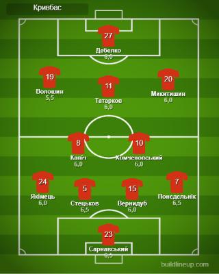 Заміни «Кривбасу»: Задерака – 6,0, Рябов – б/о, Устименко – б/о.