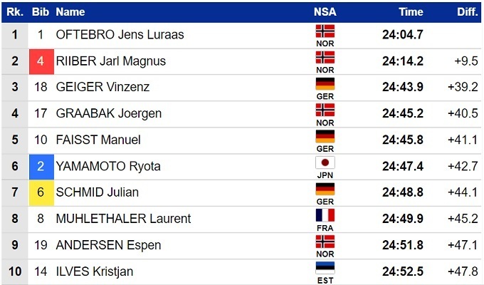 Норвезький двоборець Єнс Лурос Офтебро виграв перший особистий старт на домашньому етапі Кубка світу в Ліллехаммері, зумівши не підпустити до себе Ярла Магнуса Ріїбера. Той завдяки своєму другому місцю перехопив у німця Юліана Шміда жовту майку лідера загального заліку.