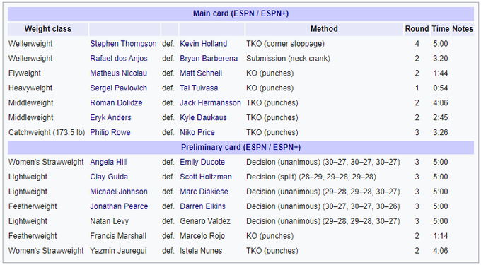 У співголовному бою бразилець Рафаель дос Аньос провів больовий прийом проти американця Браяна Барберени. Також в андеркарді бразилець Матеус Ніколау достроково переміг американця Метта Шнелля, Сергей Павлович нокаутував австралійця Тая Туіваса, грузинський боєць Роман Долідзе достроково фінішував шведа Джека Херманссона.