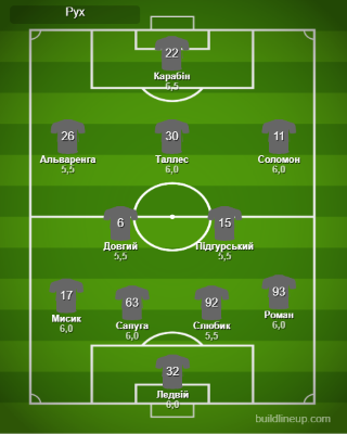 Заміни у «Руха»: Холод – 6,0, Руніч – 6,5, Лях – 6,0, Квасниця – б/о, Кітела - б/о.