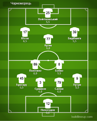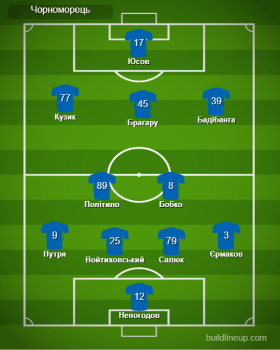 «Чорноморець»: Непогодов, Єрмаков, Путря, Бобко (Петько, 81), Кузик, Політило, Брагару, Салюк, Бадібанга, Юсов (Суханов, 78), Войтіховський (Гладкий, 88).