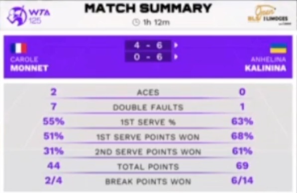 Ангеліна Калініна (Україна) – Кароль Монне (Франція) – 6:4, 6:0