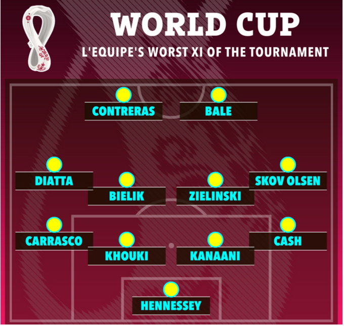 Французьке видання Lequipe разом з символічною збірною ЧС-2022 опублікувало збірну найгірших футболістів чемпіонату світу.