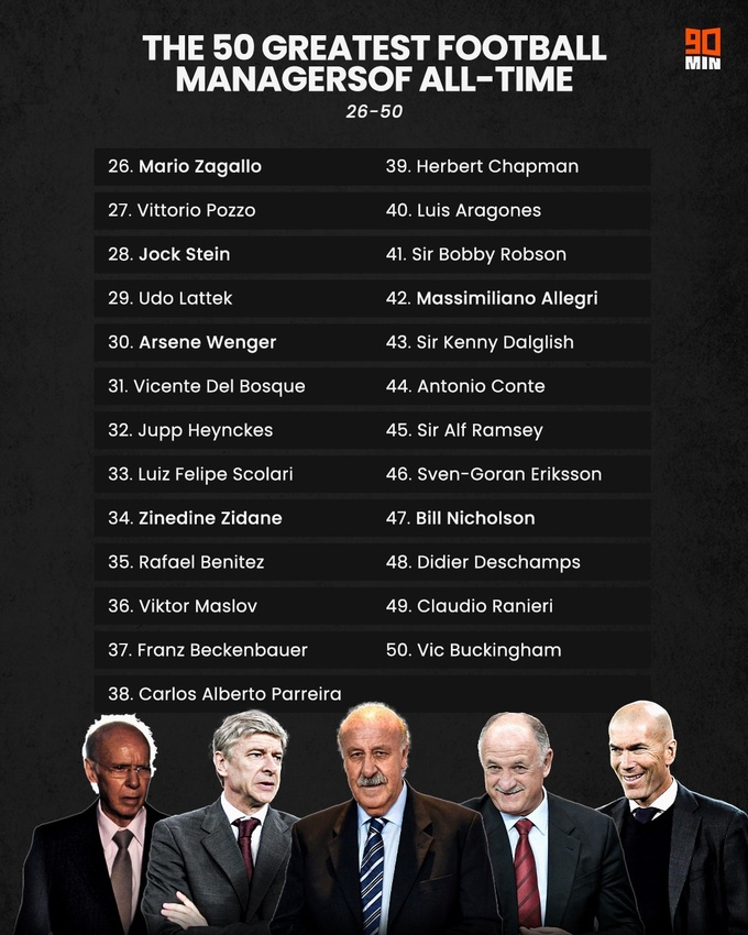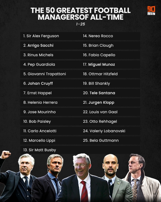 Український фахівець розташувався на 24 позиції у реєстрі. Лідером списку є шотландець Алекс Фергюсон. У топ-3 також входять італієць Арріго Саккі та Рінус Міхелс із Нідерландів.
