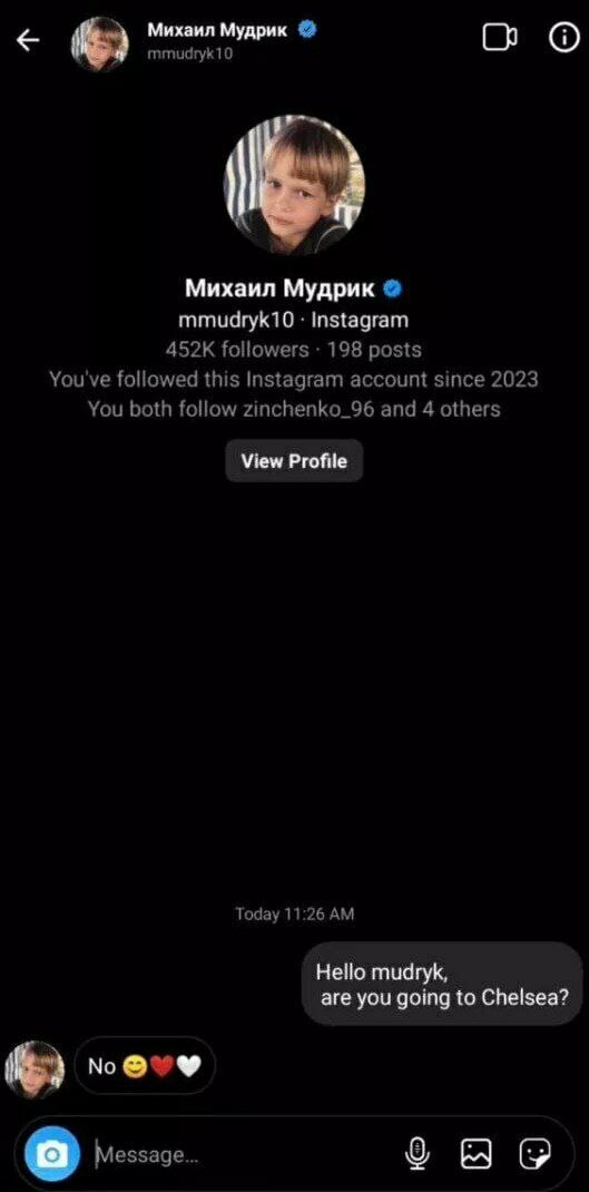 Вінгер донецького футбольного клубу «Шахтар» Михайло Мудрик відповів у Direct одному зі своїх підписників.