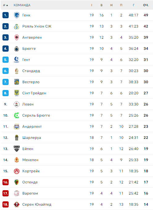 «Кортрейк» має 18 очок і йде на 15-й позиції в турнірі.