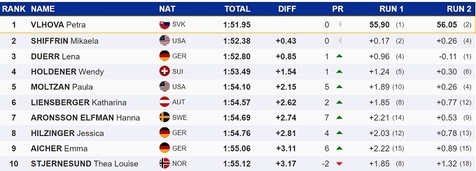 нарешті Влхова перемогла. Дуже великі відриви в жіночому слаломі.