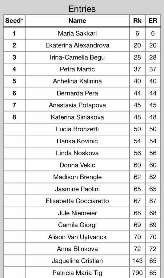 Посів на цих змаганнях очолить шоста ракетка світу Марія Саккарі із Греції.