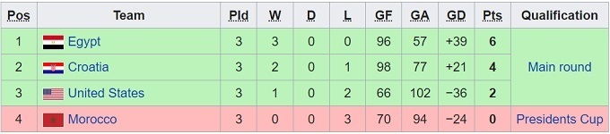 Група G: Хорватія, Єгипет, Марокко, США