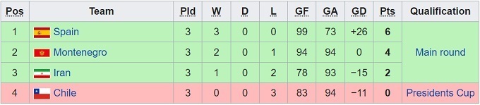 Група А: Чилі, Іран, Чорногорія, Іспанія
