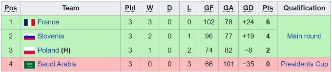 Група В: Франція, Польща, Саудівська Аравія, Словенія