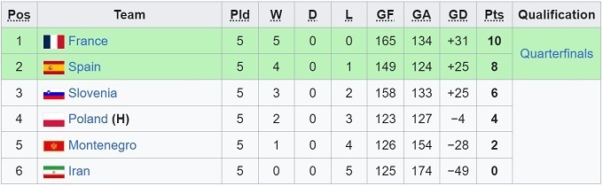 Група 1: Іспанія, Франція, Словенія, Чорногорія, Польща, Іран.