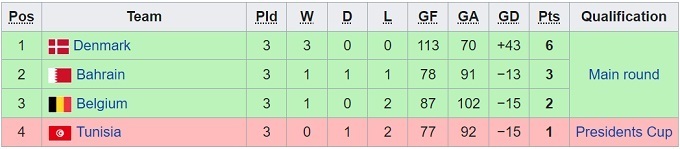 Група H: Бахрейн, Бельгія, Данія, Туніс