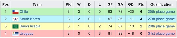 Група 1: Південна Корея, Чилі, Саудівська Аравія, Уругвай
