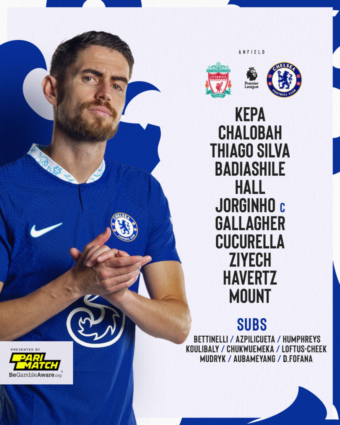 «Челсі»: Аррісабалага – Голл (Мудрик, 55), Бадьяшиль, Сілва, Чалоба (Аспілікуета, 81) – Жоржиньйо, Галлагер – Кукурелья, Маунт (Чуквуемека, 81), Зієш – Гаверц (Обамеянг, 81).