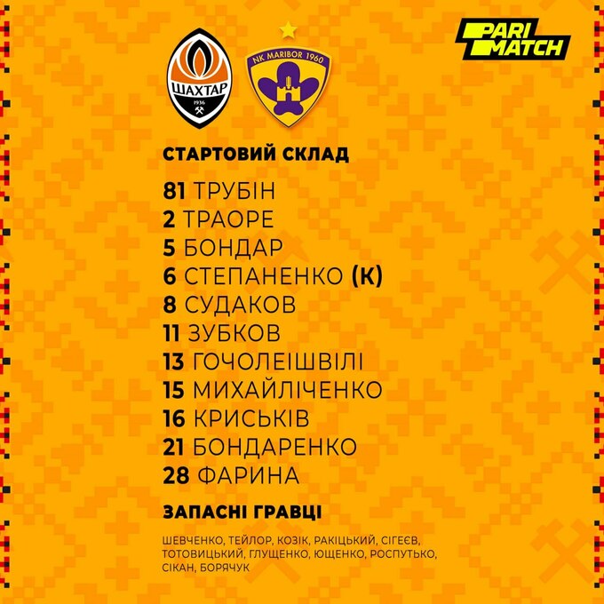 «Марибор»: Придгар (Бергсен, 46) – Гуерріко, Карич, Вотсон, Мілец – Іличич (Кронаветер, 46), Репас, Антолін –– Брнич, Випотнік, Божич.