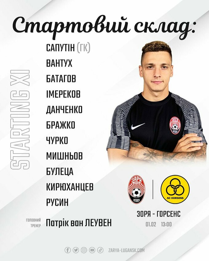 У середу, 1 лютого, на передсезонному зборі в Туреччині луганська «Зоря» проведе товариський поєдинок із данським клубом «Хорсенс».