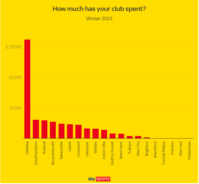 Протягом січня клуби АПЛ встановили зимовий трансферний рекорд, витративши на нових гравців 780 мільйонів фунтів, а заробити на продажах вдалося лише 120 мільйонів фунтів.