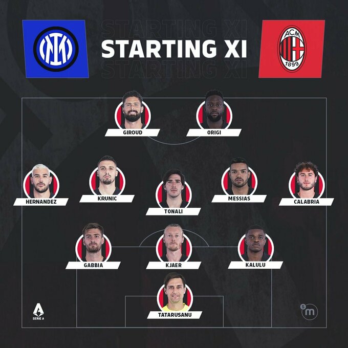 «Мілан»: Тетерушану – Ернандес, Габбія (Тіав, 70), К’єр (Ребич, 86), Калулу, Калабрія (Салемакерс, 55) – Крунич, Тоналі, Мессіас (Діас, 46) – Жиру, Орігі (Леау, 54).