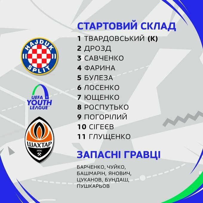 «Шахтар» U-19 у матчі плей-оф Юнацької Ліги УЄФА зіграє проти «Хайдука» Спліт, матч розпочнеться о 19:00.