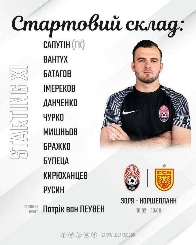 У п'ятницю, 10 лютого, луганська «Зоря» на передсезонному зборі в Туреччині проведе товариський матч із датською командою «Нордшелланд».