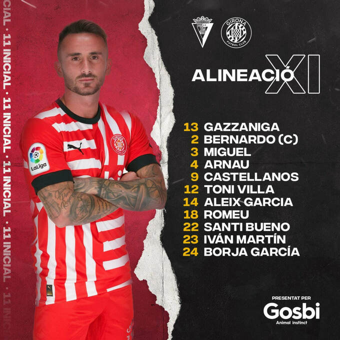 Склад «Жирони»: Гаццаніга, Бернардо, Мігель, Арнау, Кастельянос, Тоні Вілья, Алеш Гарсія, Ромеу, Санті Буено, Іван Мартін, Борха Гарсія