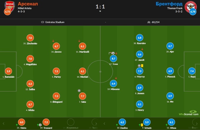 Найкращим у складі «Брентфорда» і у матчі став автор забитого м'яча Айвен Тоні (8.69).