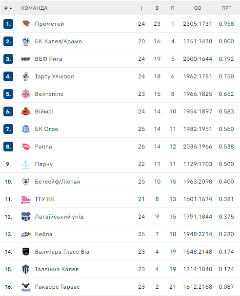 «Прометей» після 24 матчів має 23 перемоги та 1 поразку та впевнено лідирує у турнірній таблиці ЛЕБЛ.